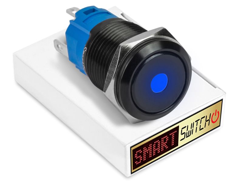 22mm Black Aluminium DEVIL EYE DOT Latching LED Switch 12V/3A (19mm Hole) - BLUE