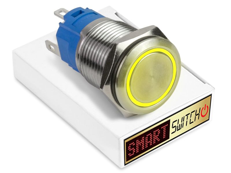 19mm Stainless Steel ANGEL EYE HALO Latching LED Switch 12V/3A (16mm Hole) - YELLOW